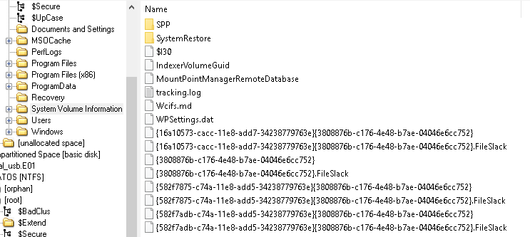 Bu yedekler genellikle dosya sisteminin kökünden \System Volume Information içinde bulunur ve isimleri aşağıdaki resimde gösterilen UID’lerden oluşur: