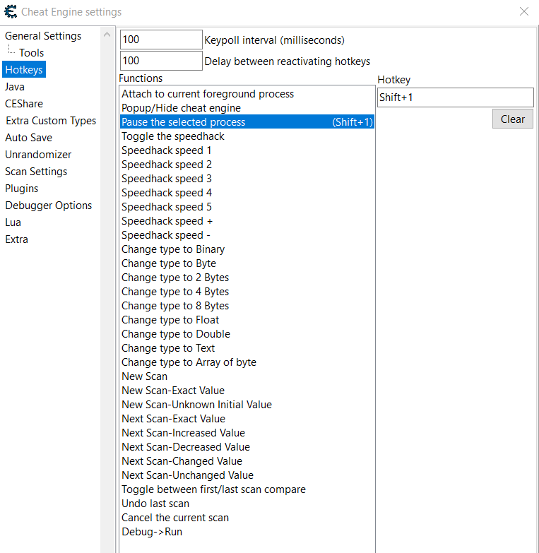 Düzenle –> Ayarlar –> Kısayollar bölümünde, oyunu durdurma gibi farklı amaçlar için farklı kısayollar ayarlayabilirsiniz (bu, belleği taramak istediğinizde oldukça kullanışlıdır). Diğer seçenekler de mevcuttur: