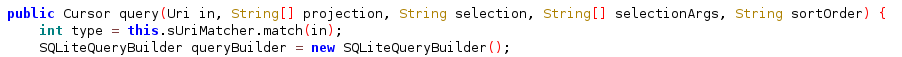 Перевіряючи код Content Provider, зверніть увагу також на функції, названі так: query, insert, update та delete: