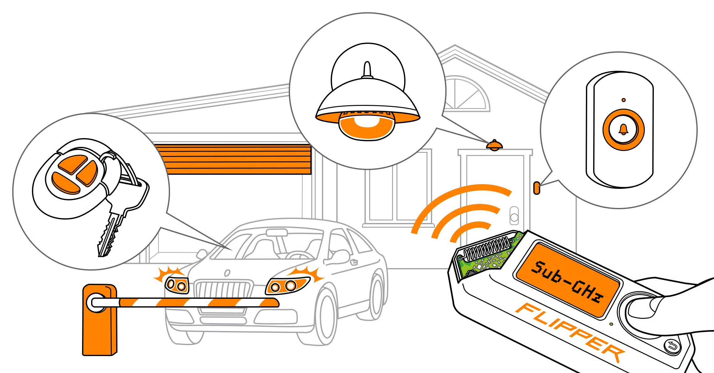 Flipper Zero 可以 接收和发送 300-928 MHz 范围内的无线电频率,其内置模块可以读取、保存和模拟遥控器。这些遥控器用于与门、障碍物、无线电锁、遥控开关、无线门铃、智能灯等进行交互。Flipper Zero 可以帮助您了解您的安全性是否受到威胁。